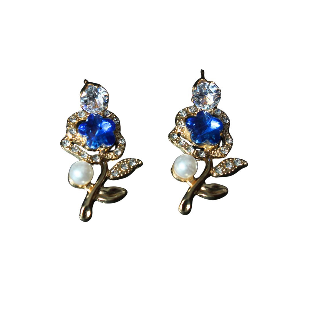Soft, elegant, and full of charm — these Blue Crystal Rose Earrings with Pearl Accent are your shortcut to effortless grace.