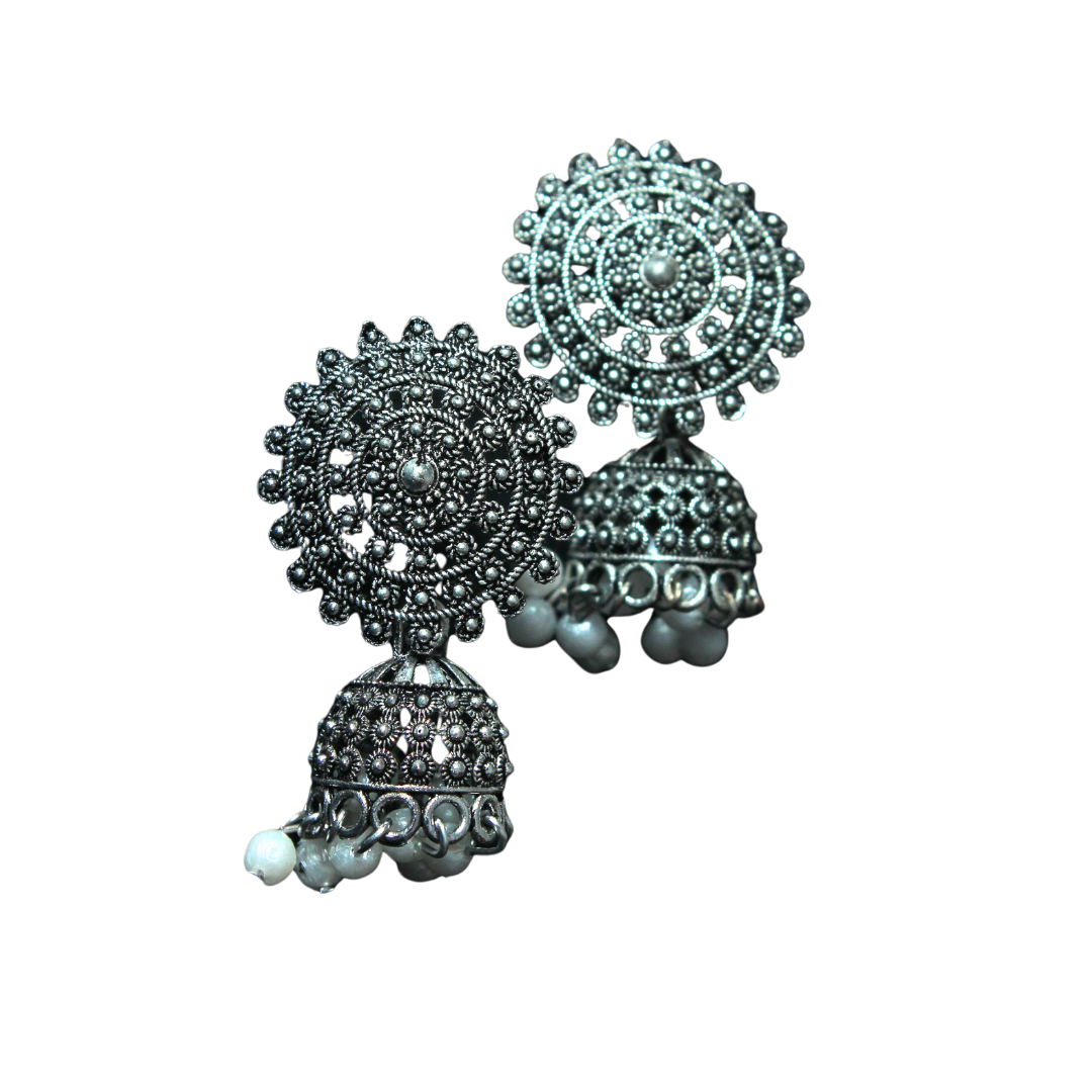 Traditional elegance meets everyday wearability in these Oxidised Circular Jhumka Earrings.