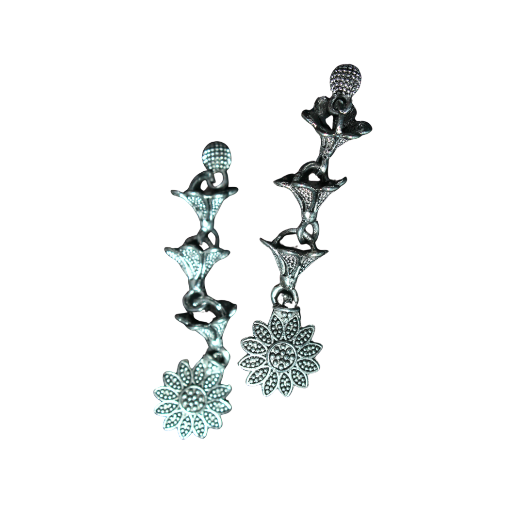 Oxidised Floral Drop Earrings